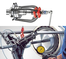 Because four-row cylindrical roller bearings can accommodate only radial loads, they are mounted together with deep groove or angular contact ball bearings, or with tapered roller bearings (either radial or thrust design) which accommodate the axial loads.